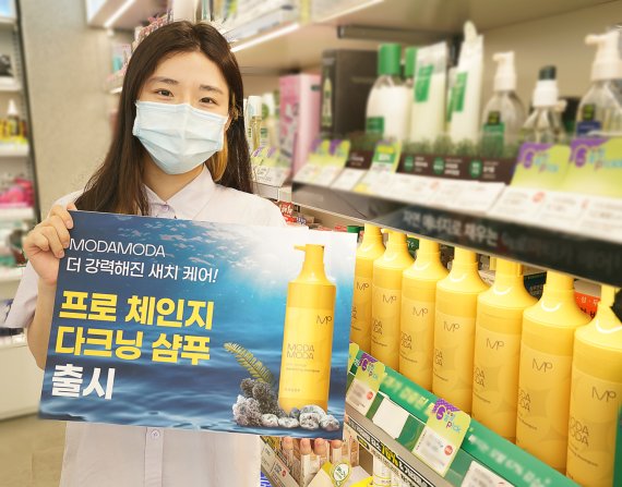 모다 모다 샴푸는 자연 갈변으로 인한 흰머리를 일시적으로 케어하고 매일 머리를 감으면서 탈모 증상을 완화해주는 헤어 컬러링 샴푸로 천연 갈변법을 이용한 모다의 폴리페놀이 주성분이다.